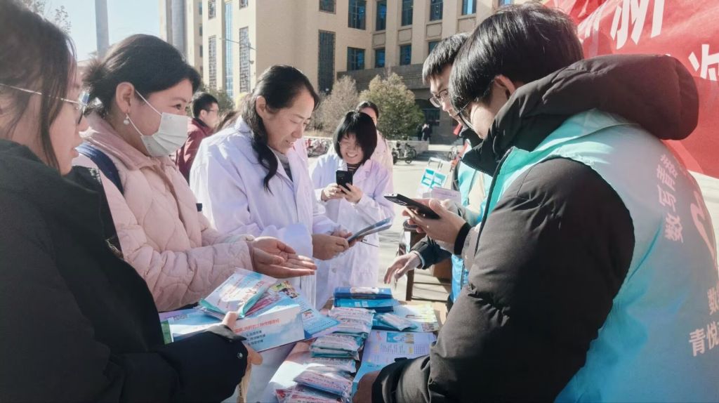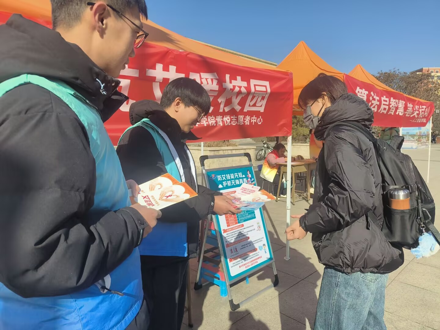 当日上午,防艾宣传活动率先在西区小广场启动。晋中市疾控中心与榆次区疾控中心工作人员与公司志愿者们不仅向过往同学发放图文并茂的防艾宣传资料,还结合实际案例,耐心讲解艾滋病的传播途径、科学预防措施及正规检测咨询渠道。通俗易懂的讲解、详实易懂的资料,让防艾知识走进员工视野,为后续主题讲座的开展筑牢了认知基础,也让“人人知艾、人人防艾”的理念在校园中初步落地。