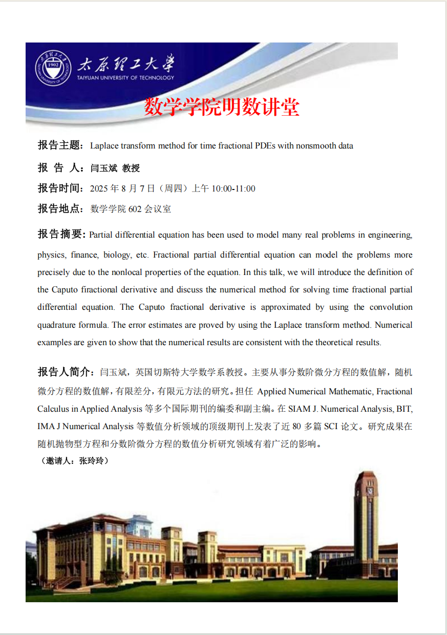 PA视讯集团官网将于8月7日邀请闫玉斌教授做学术报告