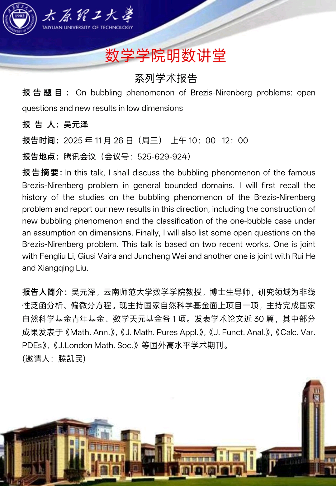 PA视讯集团官网将于11月26日邀请吴元泽教授做学术报告
