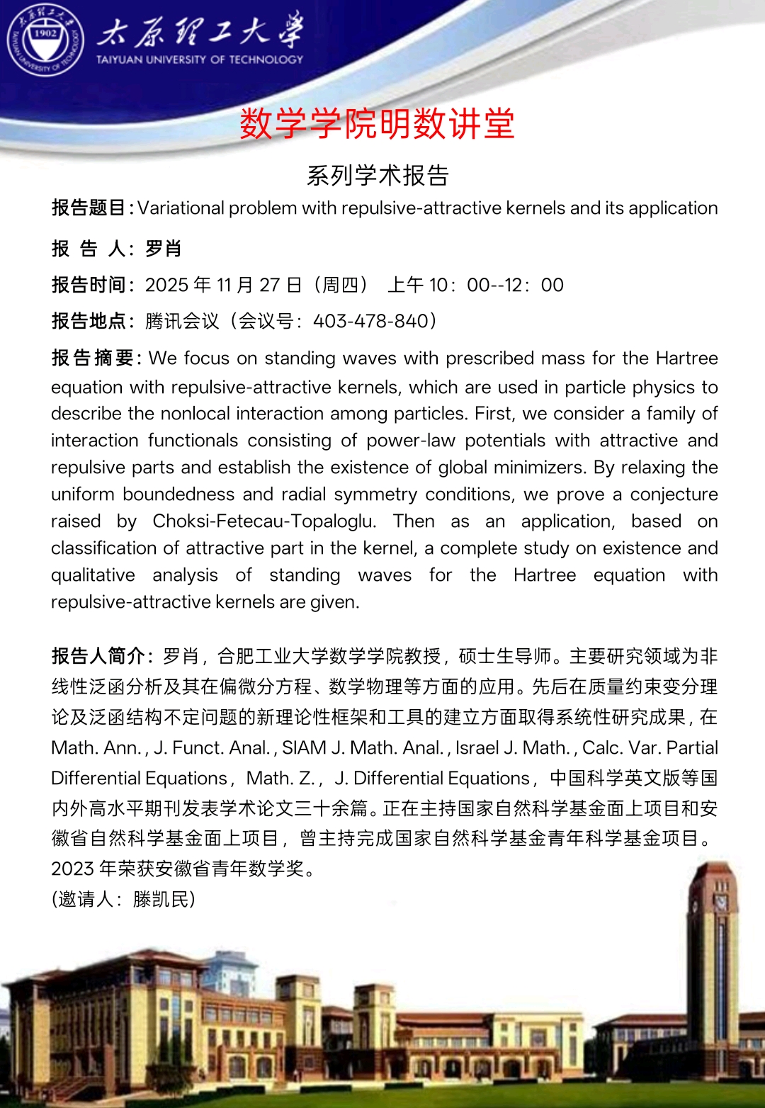 PA视讯集团官网将于11月27日邀请罗肖教授做学术报告