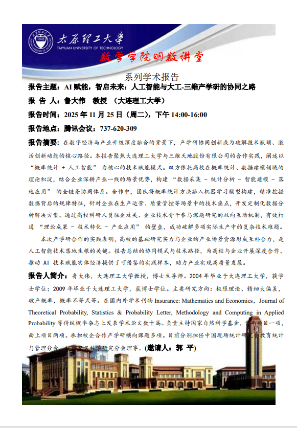PA视讯集团官网将于11月25日邀请鲁大伟教授做学术报告