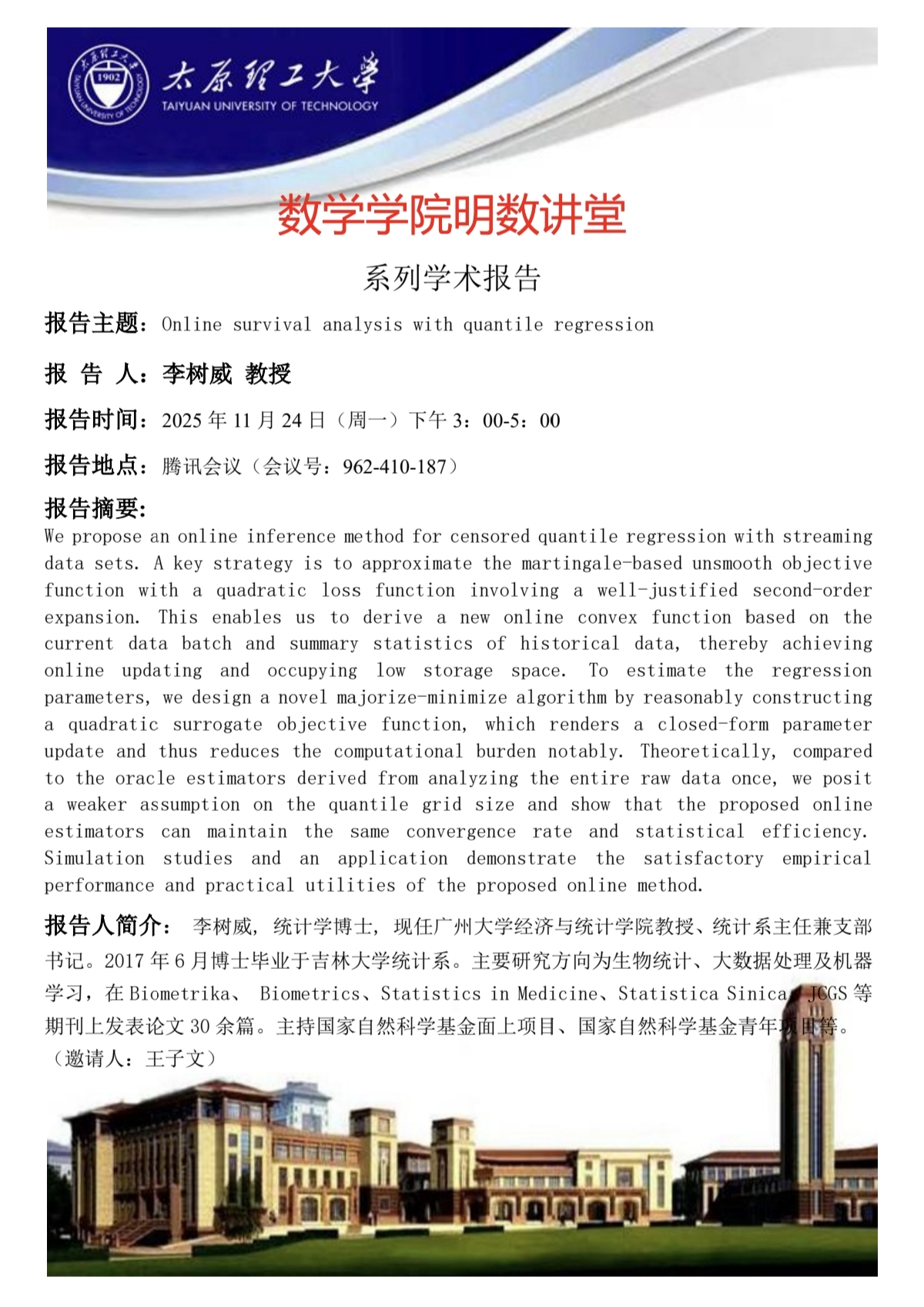 PA视讯集团官网将于11月24日邀请李树威教授做学术报告
