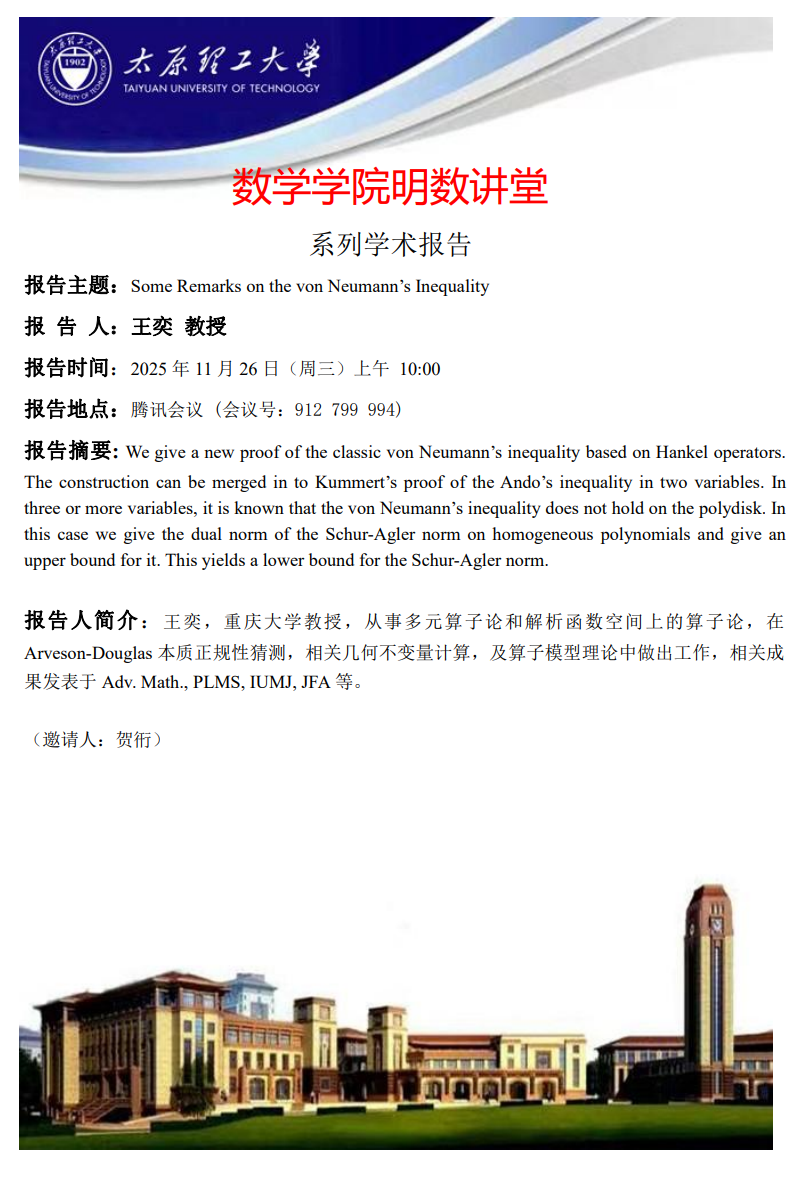 PA视讯集团官网将于11月26日邀请王奕教授做学术报告