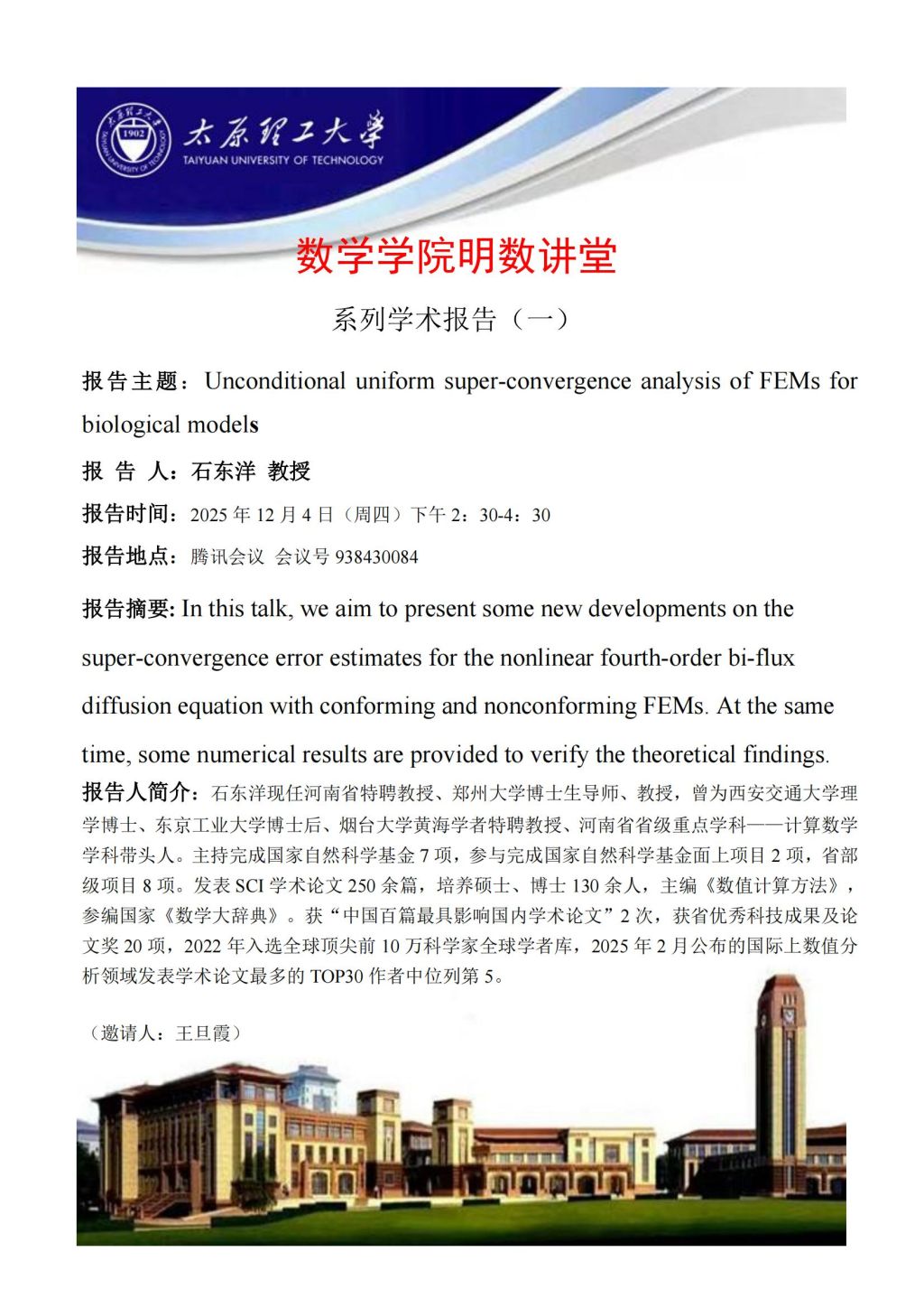 PA视讯集团官网将于12月4日邀请石东洋教授做学术报告