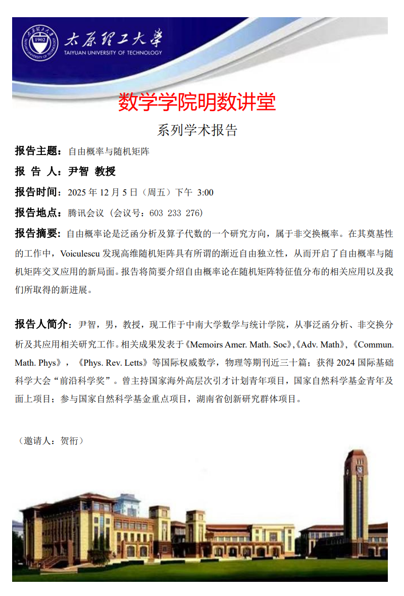 PA视讯集团官网将于12月5日邀请尹智教授做学术报告