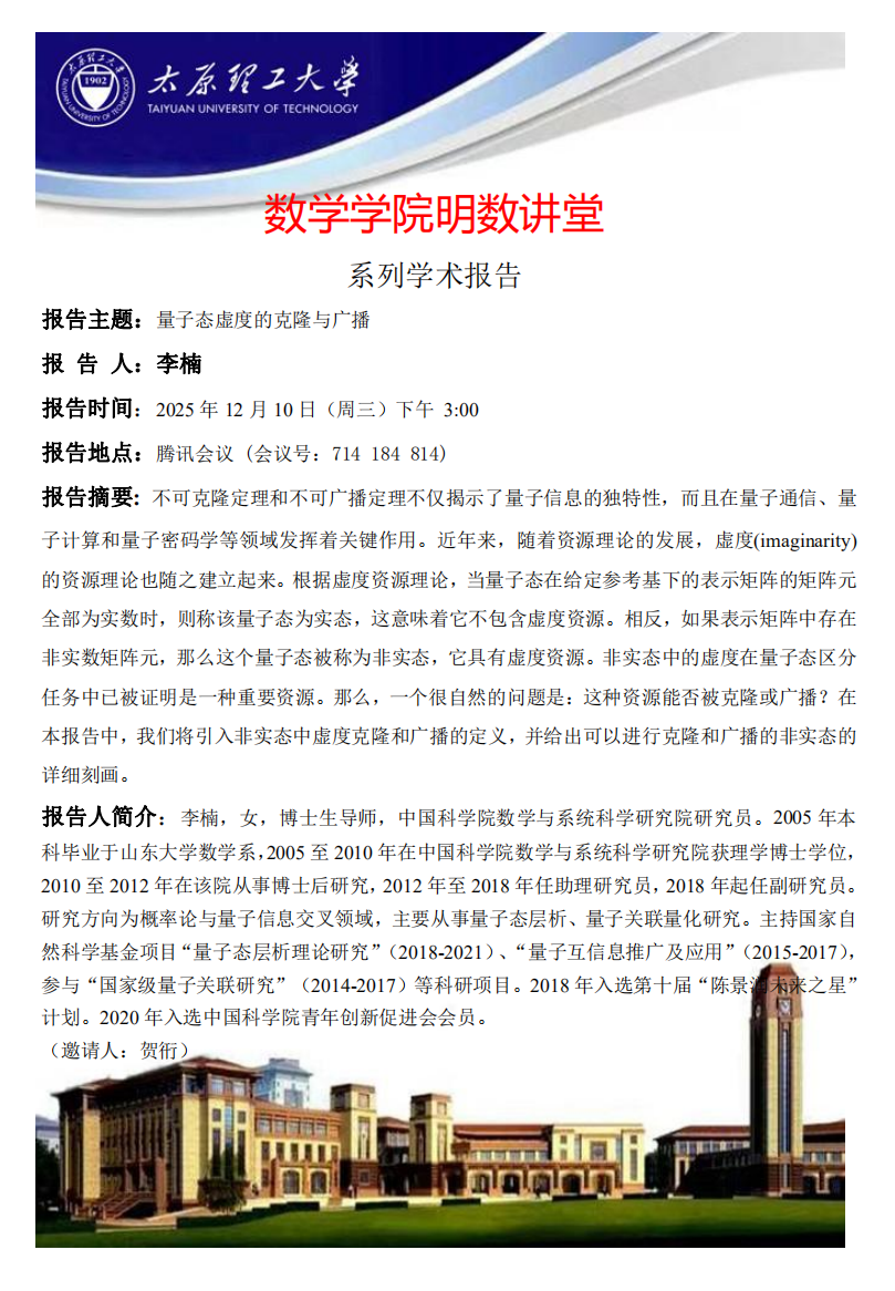 PA视讯集团官网将于12月10日邀请李楠研究员做学术报告