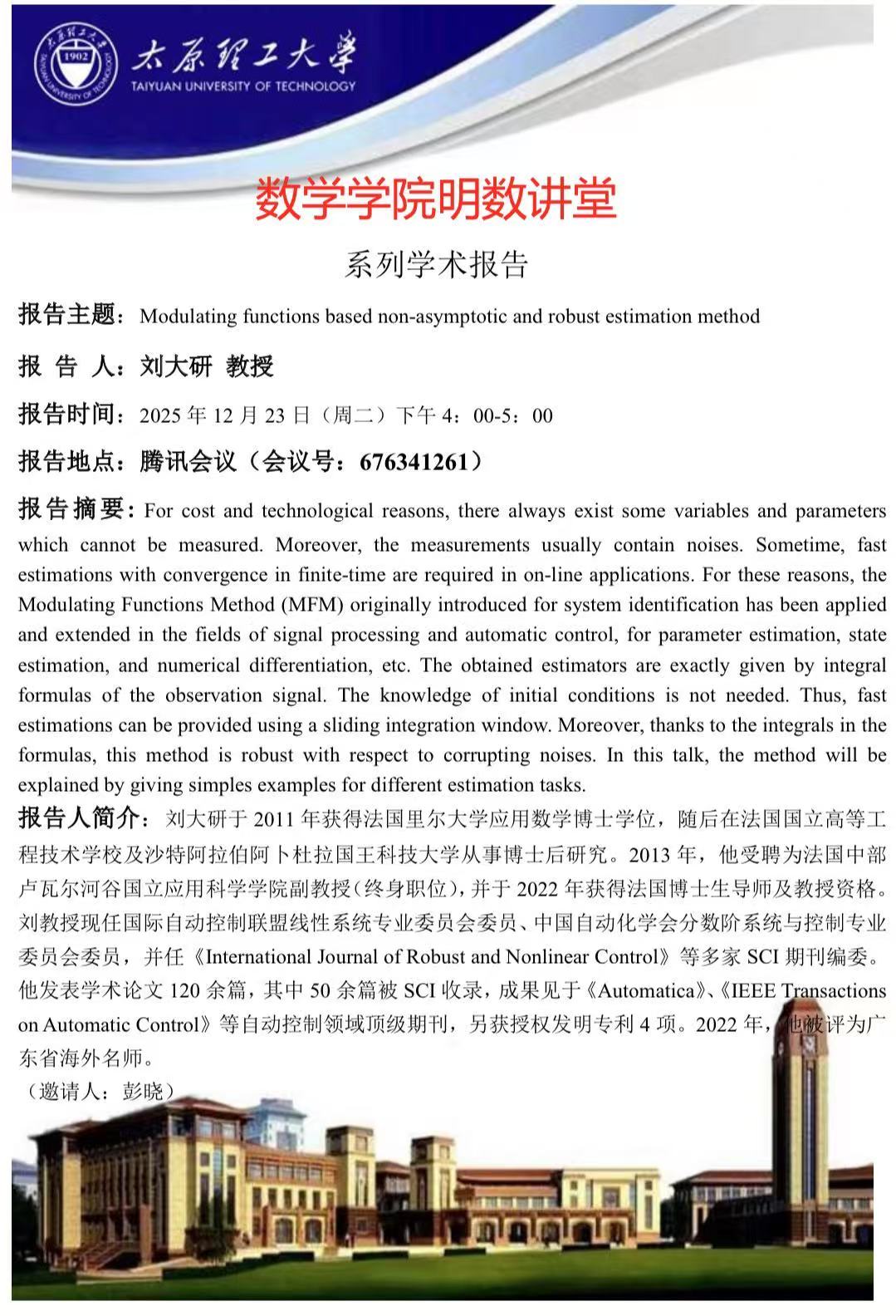 PA视讯集团官网将于12月23日邀请刘大研教授做学术报告