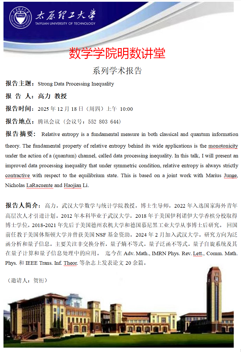 PA视讯集团官网将于12月18日邀请高力教授做学术报告