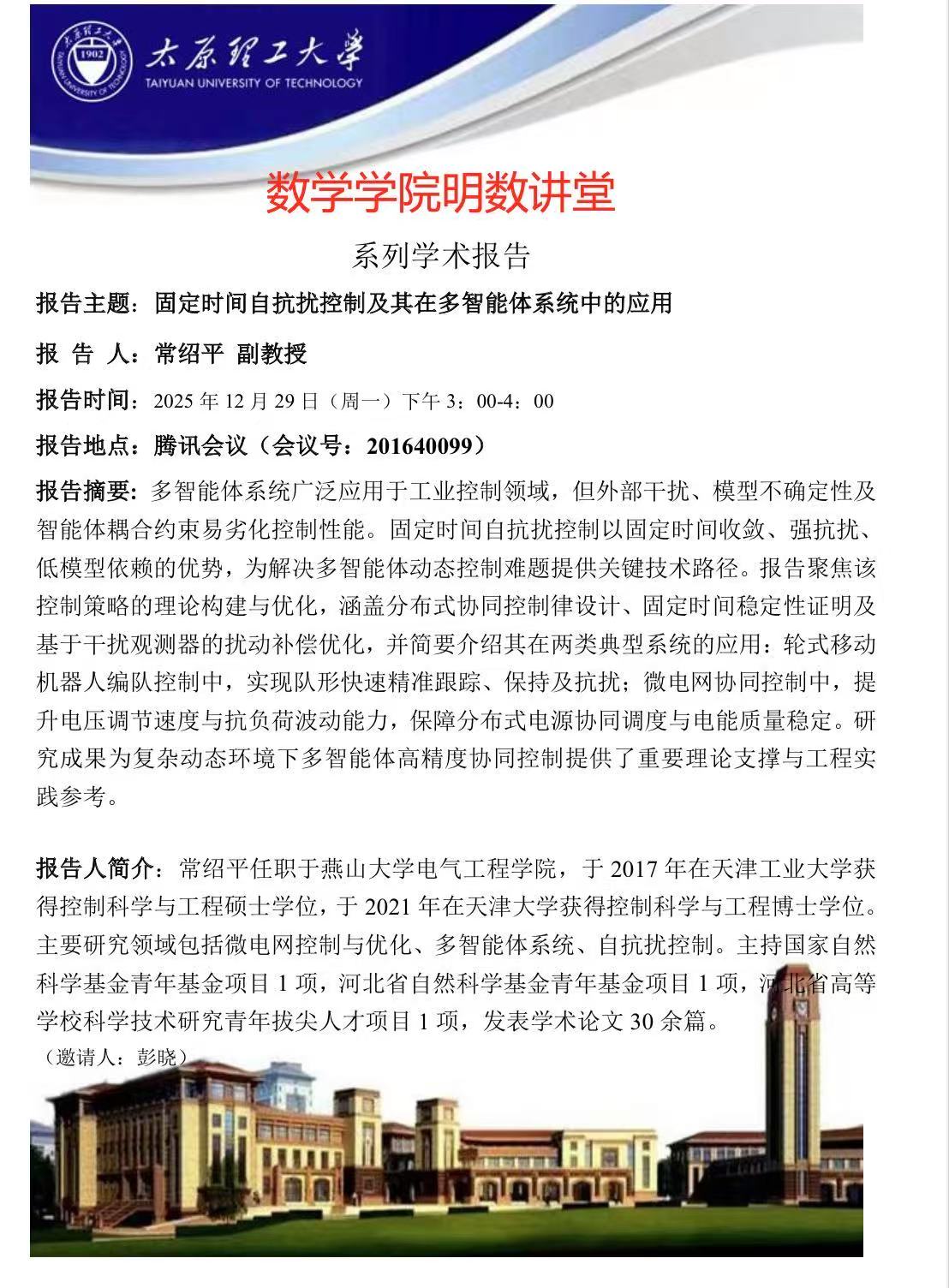 PA视讯集团官网将于12月29日邀请常绍平副教授做学术报告