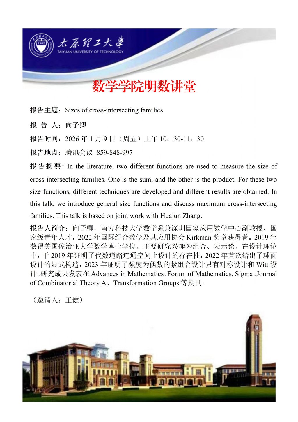 PA视讯集团官网将于1月9日邀请鲁红亮教授,向子卿副教授做学术报告