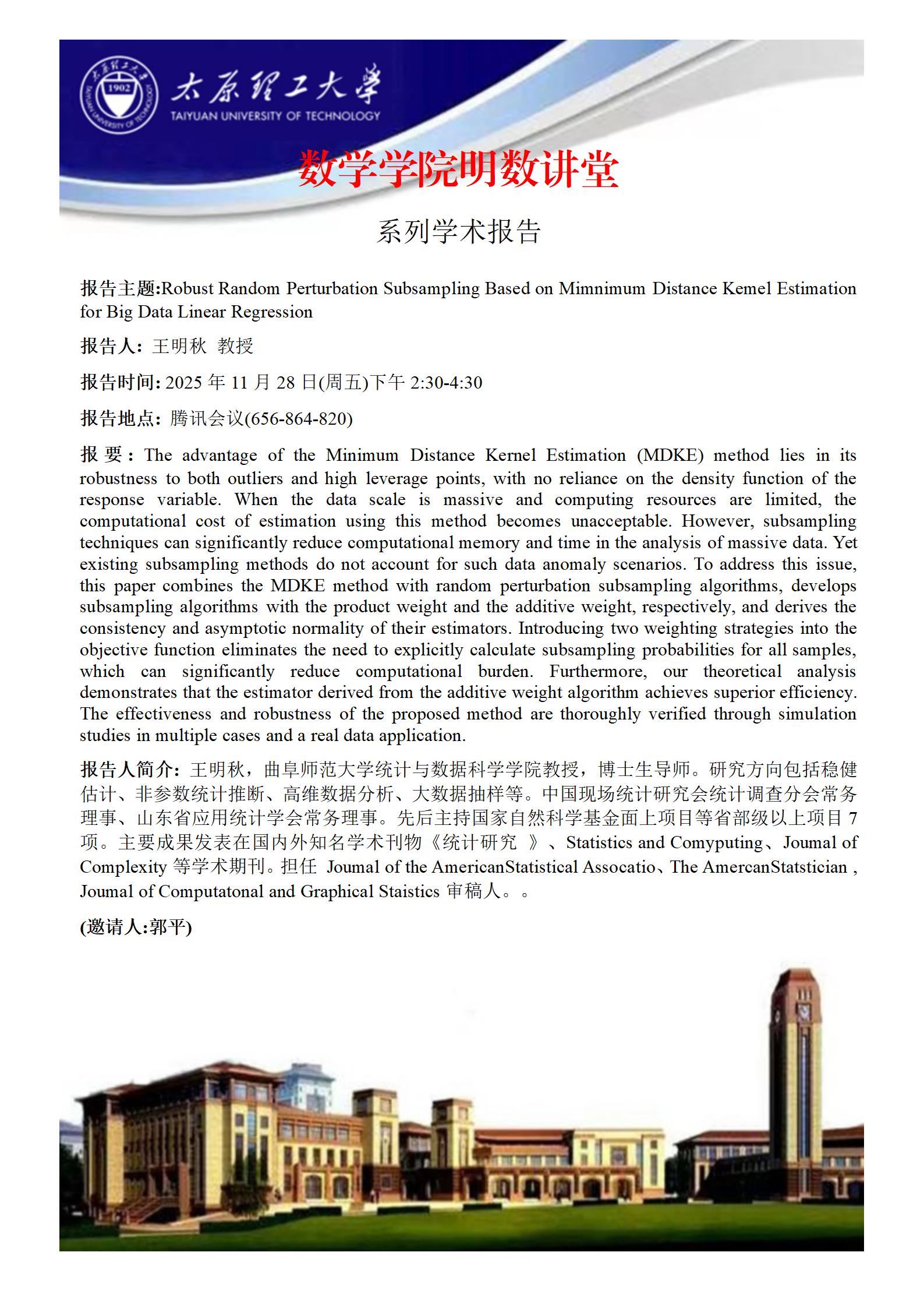 PA视讯集团官网将于2025年11月28日邀请王明秋教授做学术报告