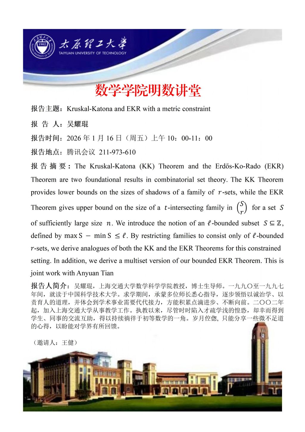 PA视讯集团官网将于1月16日邀请吴耀琨教授,杨东雷教授做学术报告