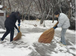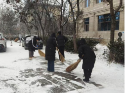 活动中,师生们不畏严寒、分工协作,对PA视讯集团官网门口、周边道路以及常师贞小广场等重点区域进行了集中清理。扫帚与地面的摩擦声此起彼伏,忙碌的身影在白雪中勾勒出一道道温暖的风景线。经过全力奋战,主要通行区域的积雪得到有效清除,为师生的安全出行提供了有力保障。